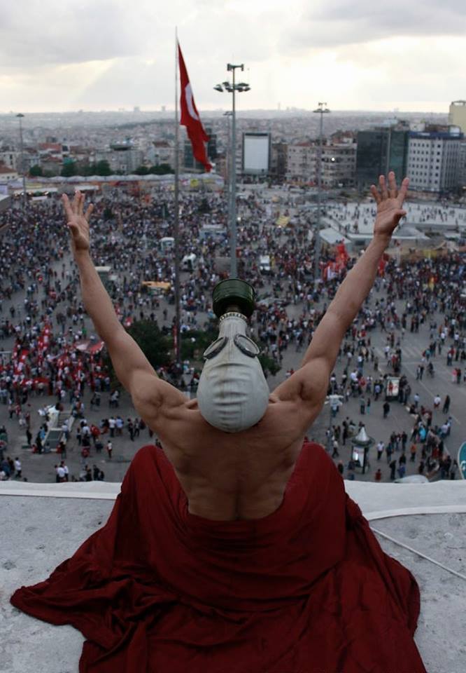If you have been following the news in Turkey right now you might know that there is civil unrest in the streets, all originating from the government’s attempt to turn one of the last green spaces in downtown Istanbul into a shopping mall (and yes, that is Tilda Swinton in the top photo).