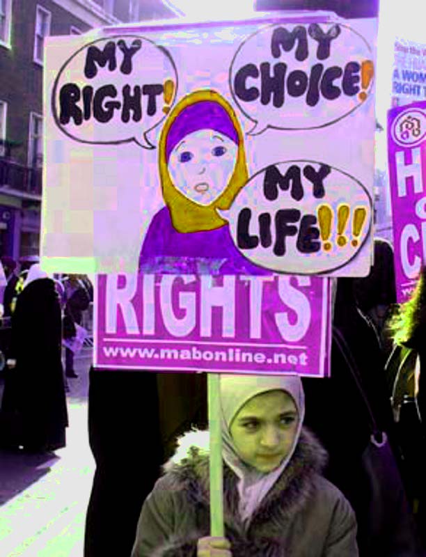 I focus here on the debate over the hijab, the Islamic head-cloth that many Muslim women choose to wear, because for me it has direct parallels to the same logic and reasoning found in many Pro-Choice and Sexual Rights movements operating today; that is, that every woman should have the freedom to choose what they want to do with their bodies. Control over her body and the freedom to decide the course of her own life is critical not just to woman’s civil rights but all human rights as well. The fact that the people—-who seem blind to their own racial privileges and use xenophobia and Islamophobia to support their cause—-just happen to be women does not strengthen their arguments, it simply shows that we still live in a time and place where the dominate culture feels that it has the right to declare who gets to be called a Feminist and what a Feminist should look like.