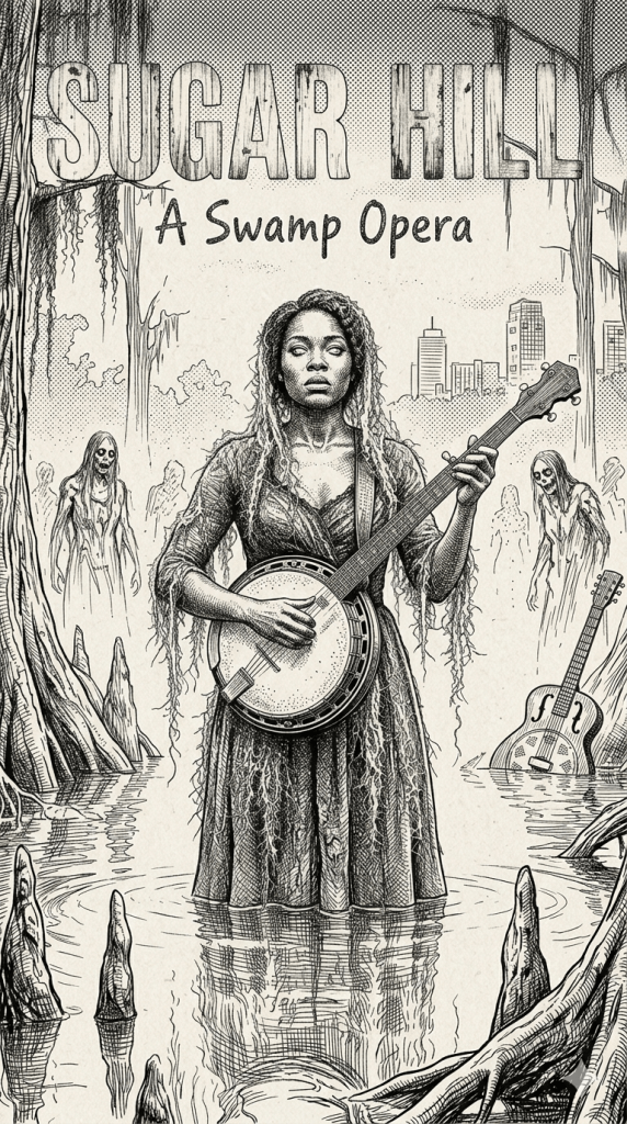 Speaking only for myself, Sugar Hill is an Opera about Grief, Vengeance and Transformation. But it is also an Opera about Sound—about what Power might sound like, what Grief might sound like, what the Dead might sound like when they rise. To the best of my ability, the musical language of Southern Gothic and Dark Americana should not be an aesthetic overlay; I hope that it is the very substance of the work. The Swamp that haunts my dreams is not a setting; it is a Presence. The Guitar and Banjo are not instruments; they are Moral forces.