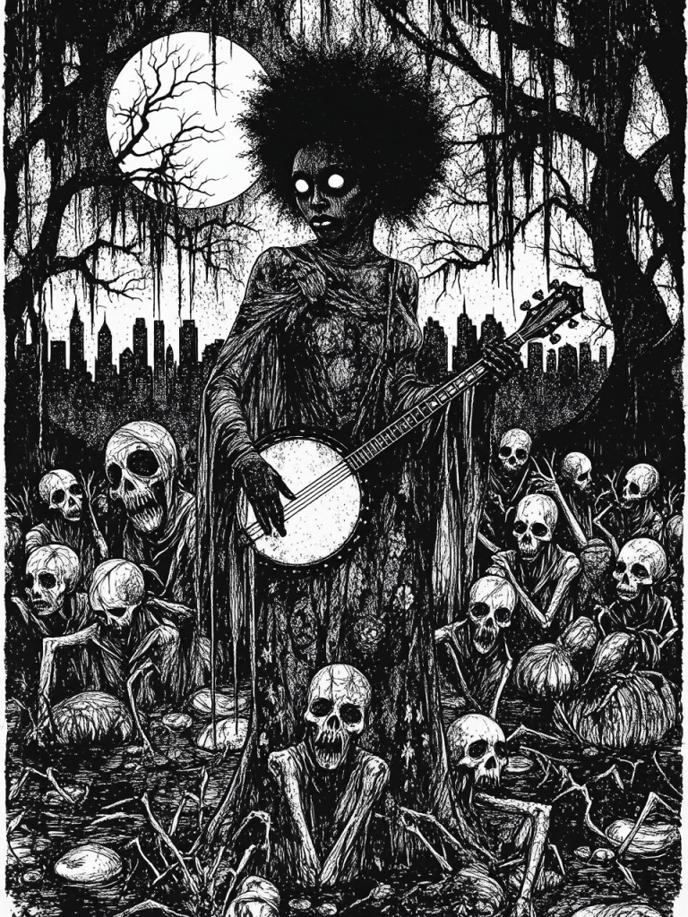 I, myself, come to this material as a pale male, a composer of Russian, Italian, Jewish and Irish descent, a relative newcomer to the Southern Gothic and Dark Americana traditions that have shaped this Opera. Spanish is not my native language. I do not claim expertise in the Histories, Spiritual practices, or lived experiences that form the foundation of this story. What I can offer, though, is an act of listening—to the Scholars, Musicians and Traditions that have long cultivated the soil from which this work grows. This libretto has been shaped by deep study and love of Black composers (Harry Lawrence Freeman, Florence Price, Margaret Bonds) and contemporary practitioners (Rhiannon Giddens, Nicole Brooks, Jessie Montgomery) whose work demonstrates how to honor these Traditions with rigor and care.