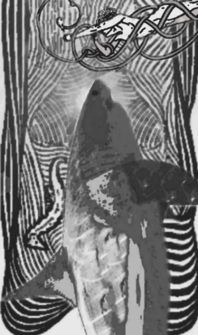 Dakuwanqa (Fiji) Shark god who was the eater of lost souls. (Bakker, 1925; Knappert, 1992; Wall, 1918) Dogfish Woman (Haida Gwaii, Canada) Shark goddess. A powerful figure in the folklore of beings of the sea; Dogfish Woman is related in a story of a woman who could transform herself into a shark, and in this form she enters into the other-realm of knowledge, the undersea world. The dogfish is a small variety of shark that inhabits the waters of the North Coast, including those of Queen Charlotte Islands, British Columbia. Various tribes have a system to identify important figures in their art, and the dogfish is recognized by its gill slits as crescents, crescent shaped mouth, depressed at corners and filled with saw-like teeth. An old medicine man living near the end of Cape Flattery on the north coast recorded a song addressed to the goddess with these words: “Where are you, on whose back the waves break?” (Basti, 2002)
