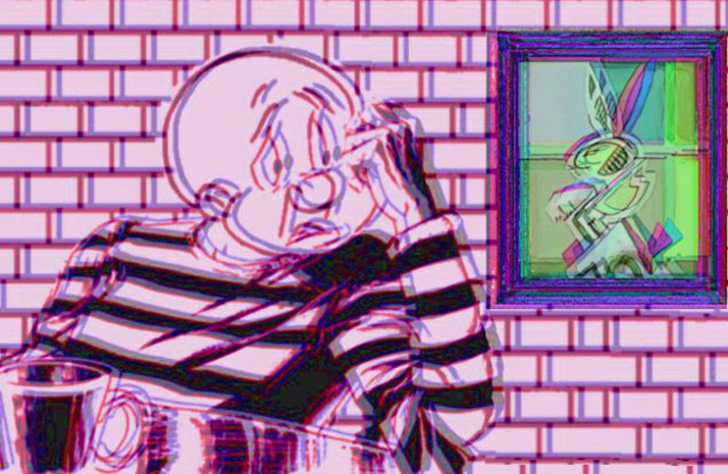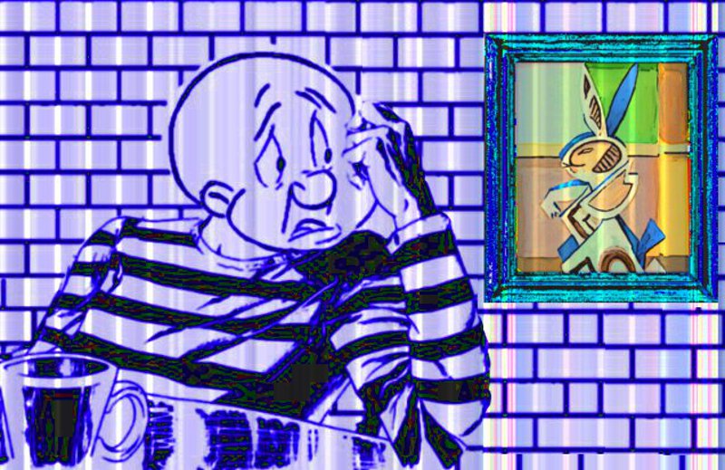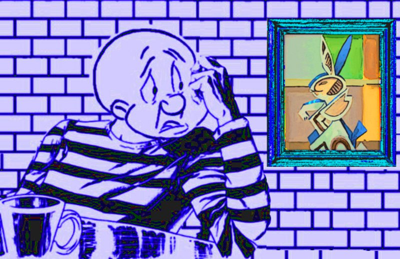 art, black and white, blue, blur, Elmer Fudd, Pablo Picasso, pink