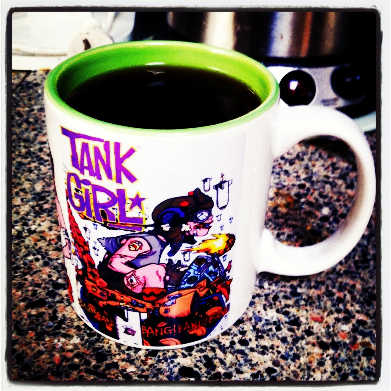 coffee, happy, reblog, riot grrl mug, spewbucket, Tank Girl!