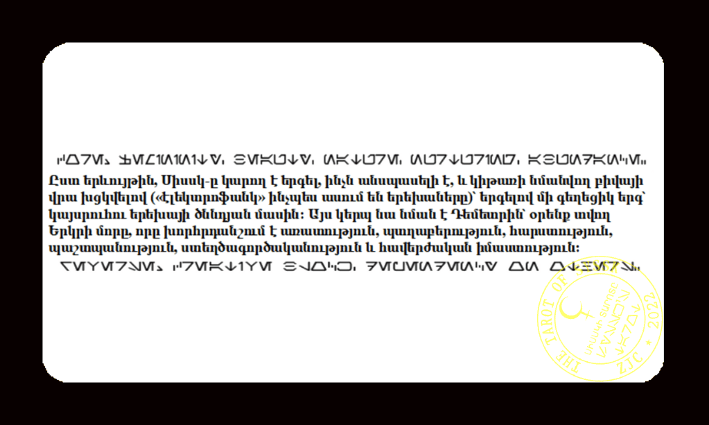 The decks I consulted in designing the cards were The Rider-Waite deck, The Barbara Walker Tarot, The Hermetic Tarot and Yonas Lunata’s Qabalistic Tarot.