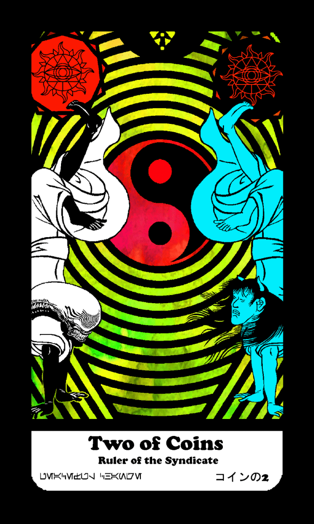 Notes: Originally this was titled, “Ruler of Multitasking,” since the 2 of Pentacles in The Rider-Waite deck is all about balancing multiple priorities, except “multitasking” feels like such a modern term, it just felt off. I discovered, however, that one of the older definitions of the word, “Syndicate,” concerns itself with harmonious group work … though its modern usage is almost entirely mob-related. Perhaps there is a better term somewhere.