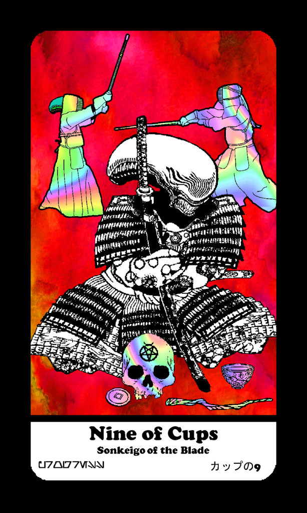 Notes: One of my goals with this deck was to make it easy enough to understand so that a reader wouldn’t need to know about samurai, their Bushido code of ethics and/or Japanese history (so, naturally I slapped Japanese text on each card because being inconsistent is something that I apparently strive for). The Way of the Blade is, briefly, the idea that a warrior can and will cultivate an, “implacable fighting spirit to overcome their enemies.” How one wants to define an, “implacable fighting spirit,” is left up to the reader to decide; however, for me it means honing your skills until you are a master at whatever it is that you’re doing. In that way it hearkens back to The Rider-Waite idea of contentment, satisfaction and gratitude.