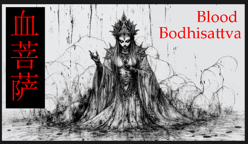 [From his robe, Bǎ Xī Lā removes a burning heart—still pulsing, riddled with veins of silver qi. He pours it into her, into the maw. The chanting outside grows frantic. As the last of the qi is spent, the heart withers to ash. The glow dims. The vagina dentata closes like swirling sand in the desert.]