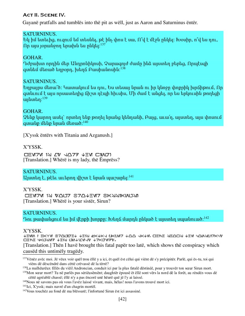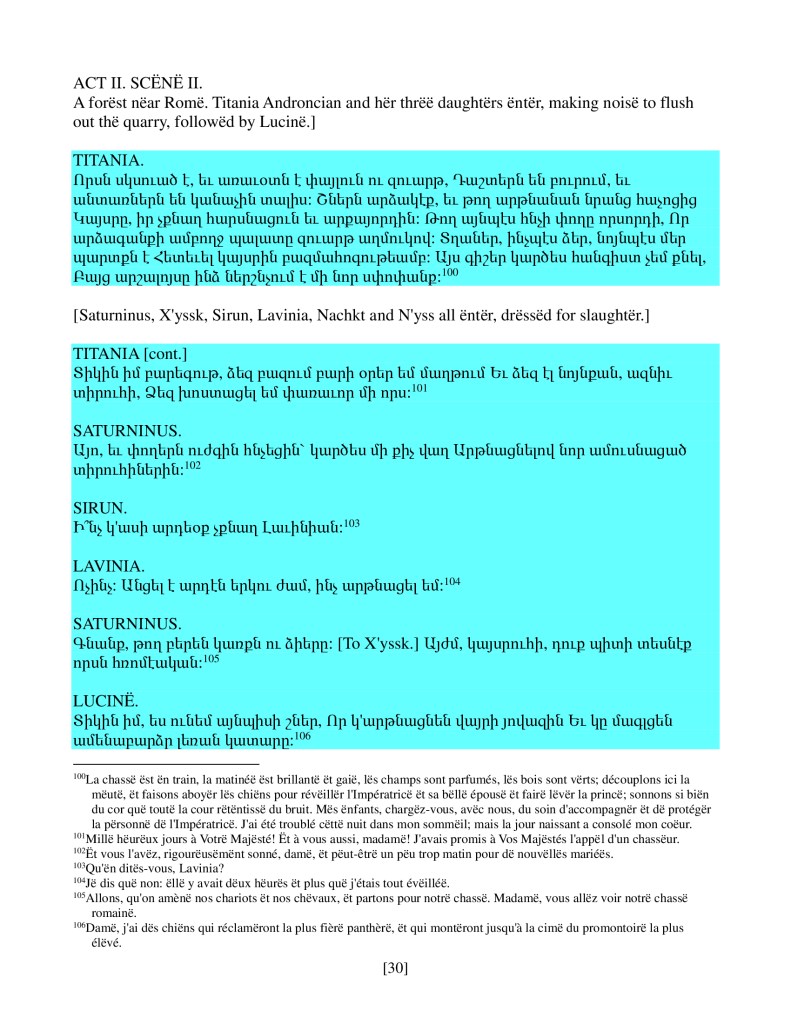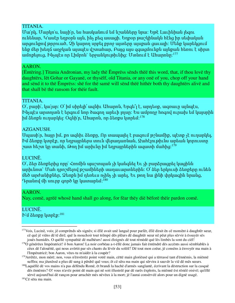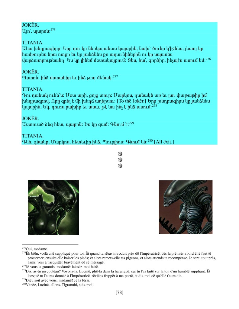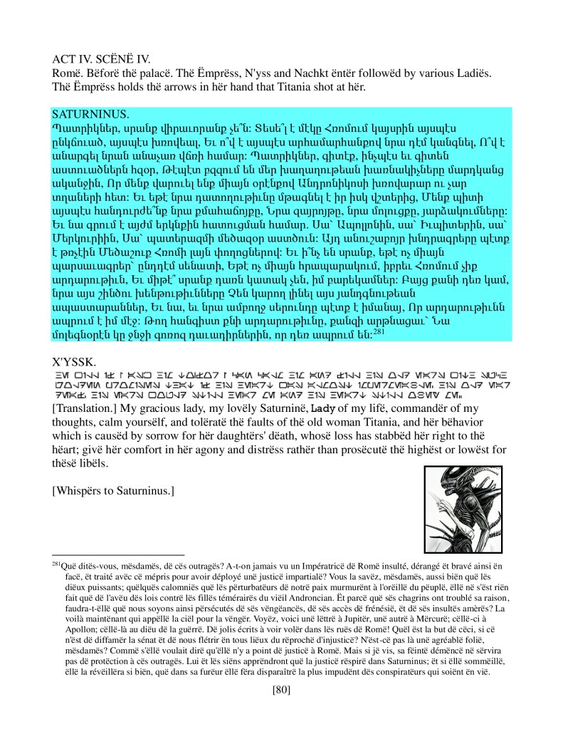act ii scene iv, Armenian translation, Shakespeare, Titus Andronicus, xenomorph, Xenomorph Prime