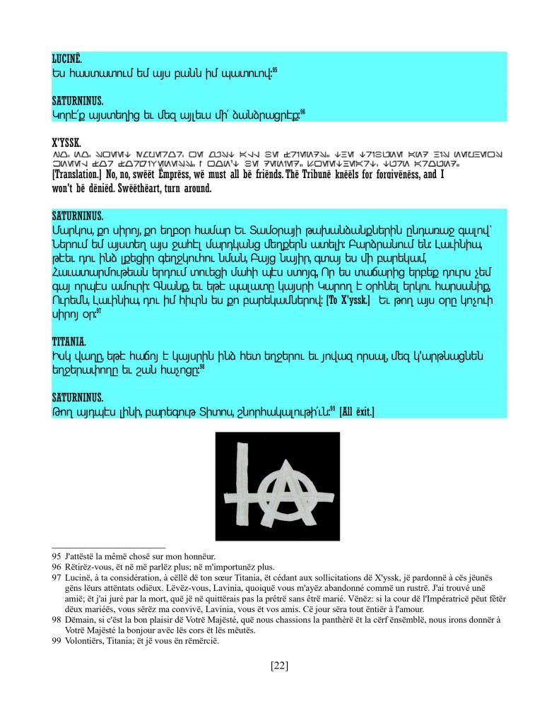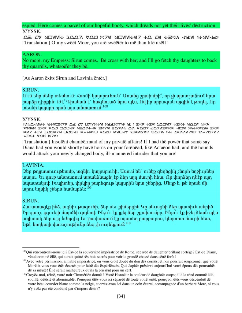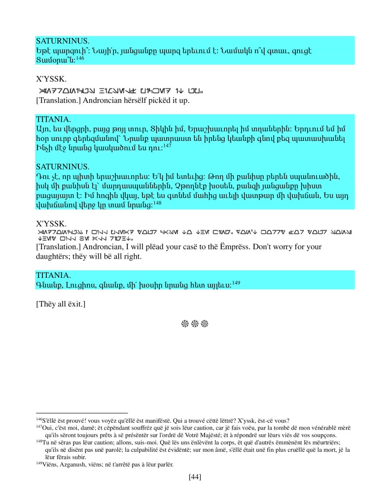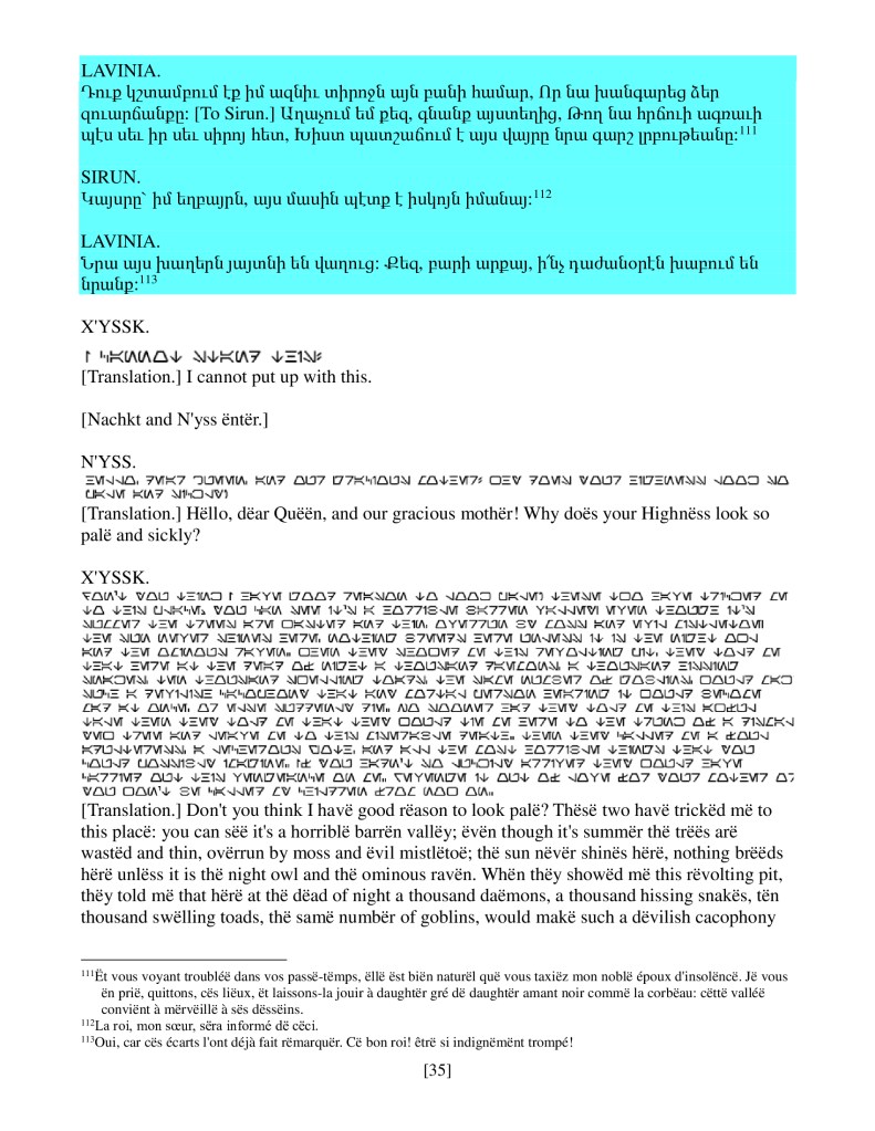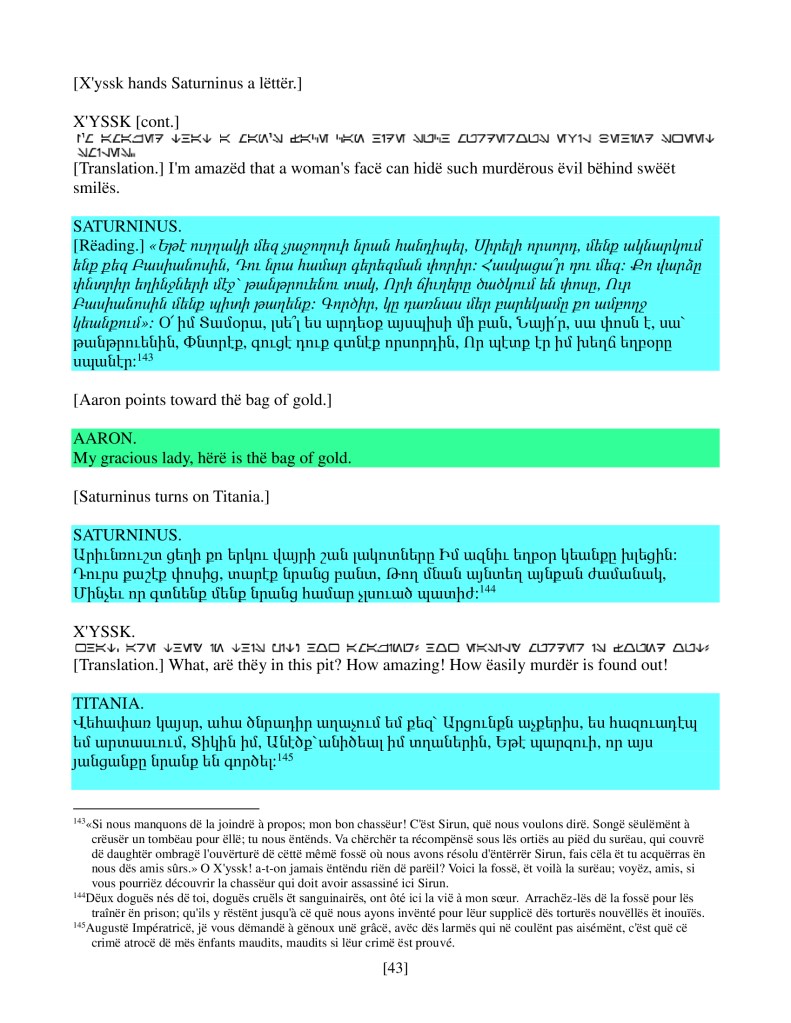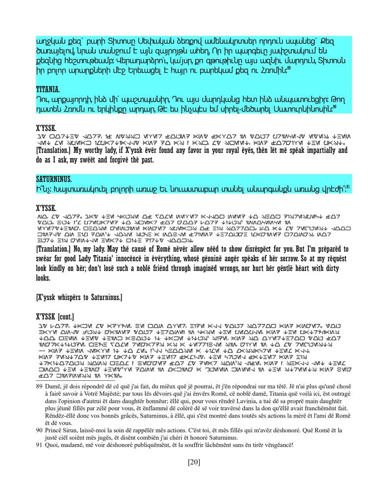 act ii scene iv, Armenian translation, Shakespeare, Titus Andronicus, xenomorph, Xenomorph Prime