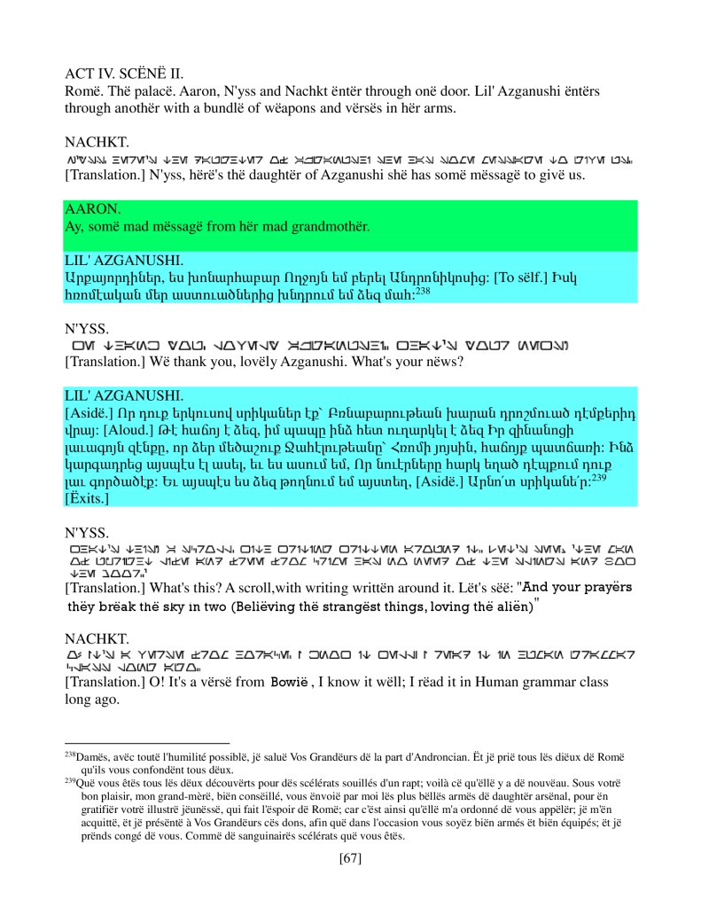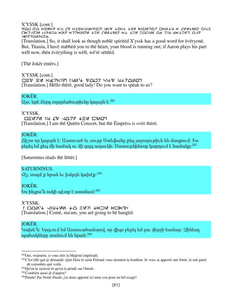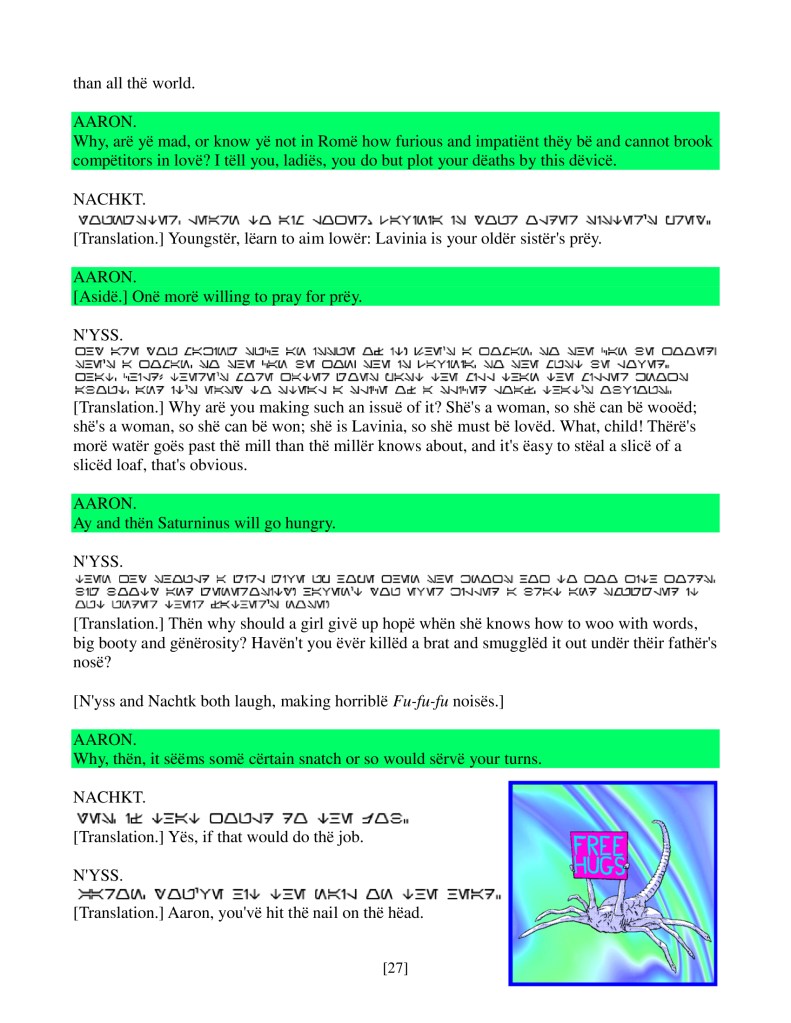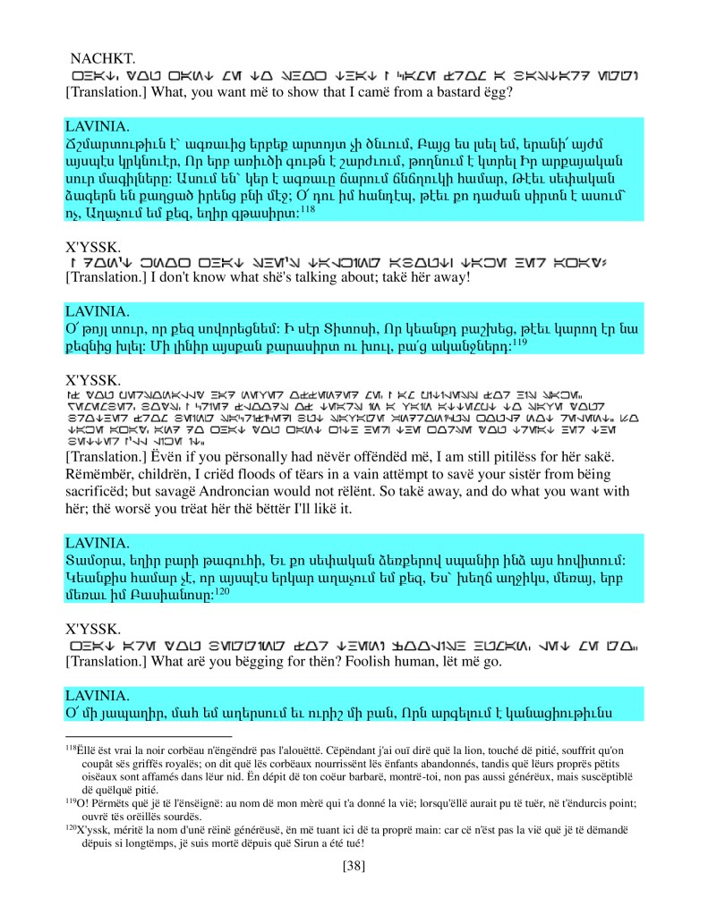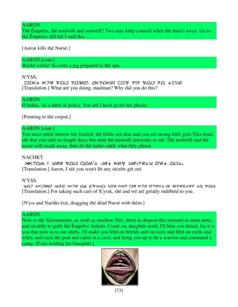 act ii scene iv, Armenian translation, Shakespeare, Titus Andronicus, xenomorph, Xenomorph Prime