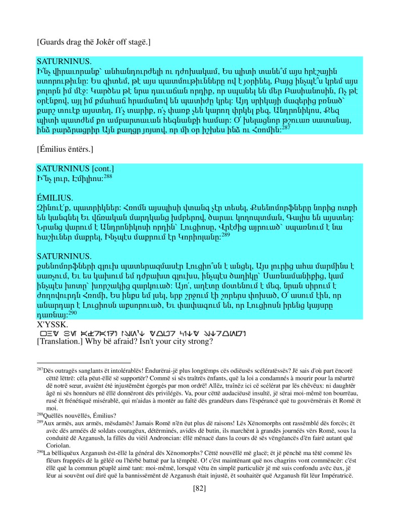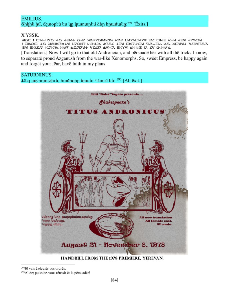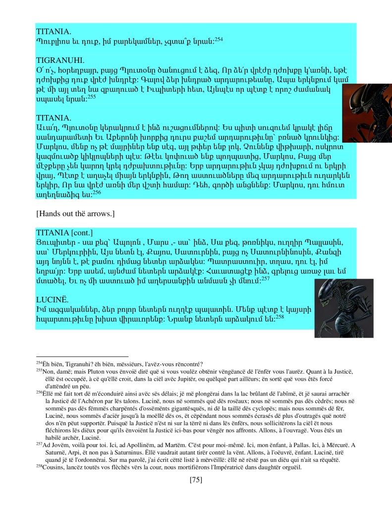 act iv scene iii, Armenian translation, drama, Shakespeare, Titus Andronicus, xenomorph, Xenomorph Prime